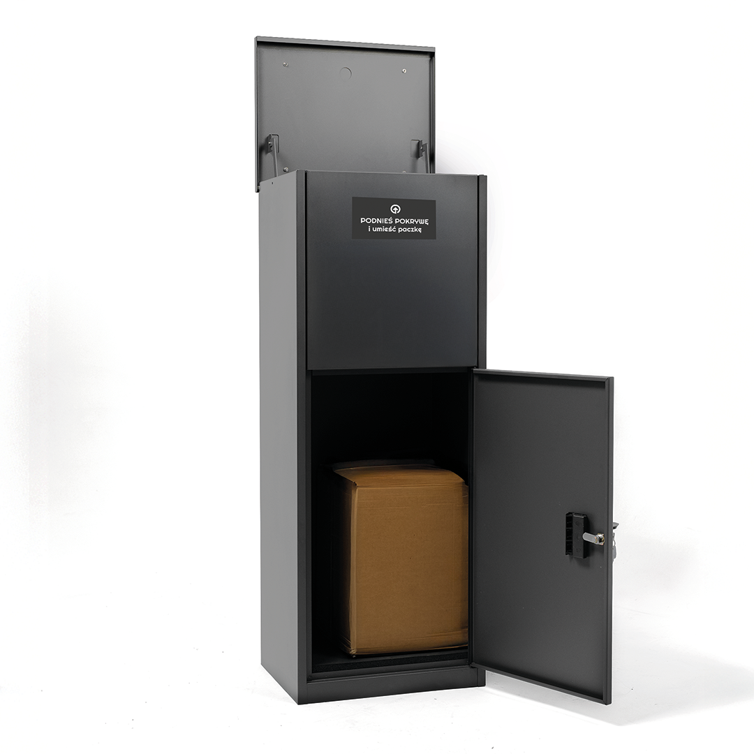 To nowoczesna, trwała i stylowa skrzynka na paczki, która chroni Twoje przesyłki przed kradzieżą, deszczem i słońcem.